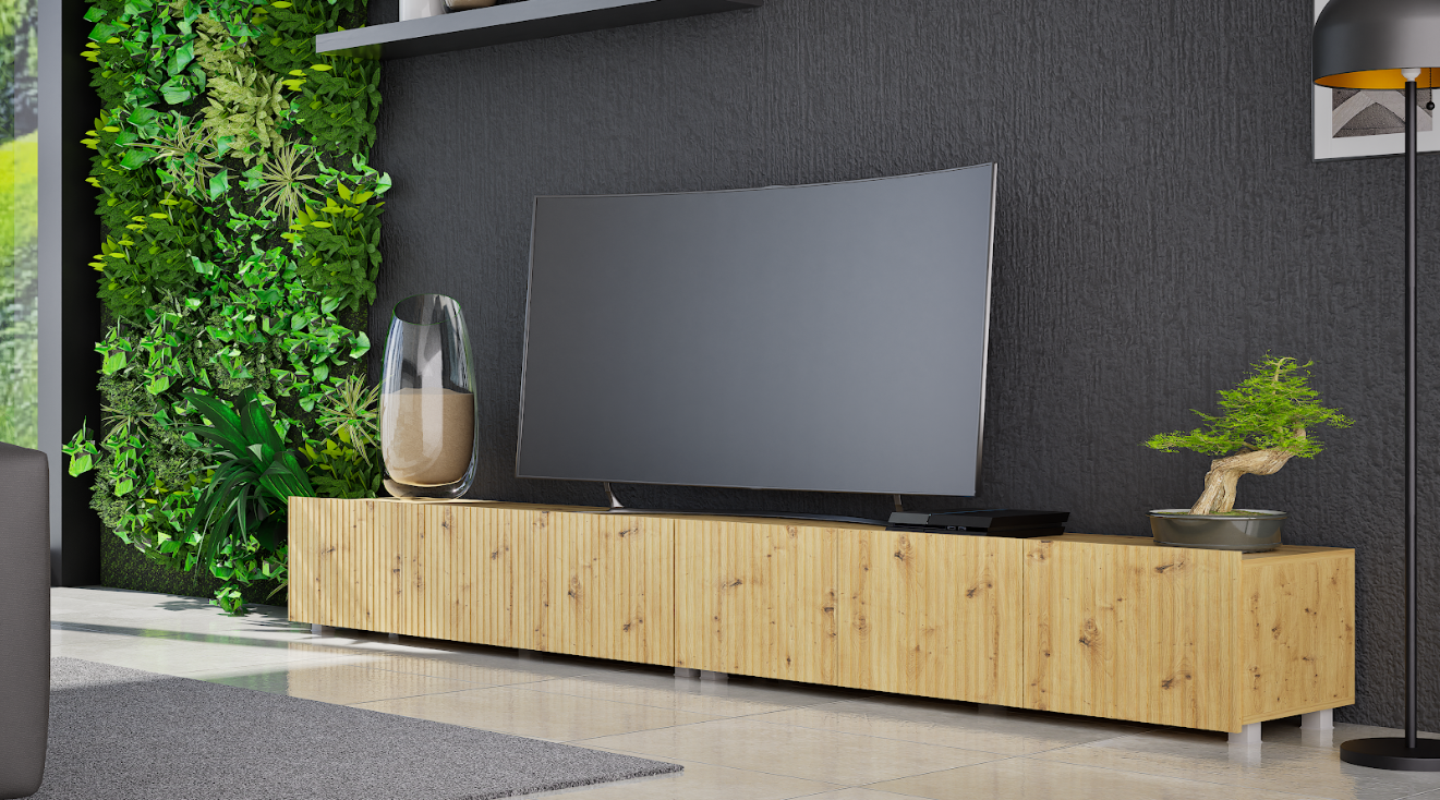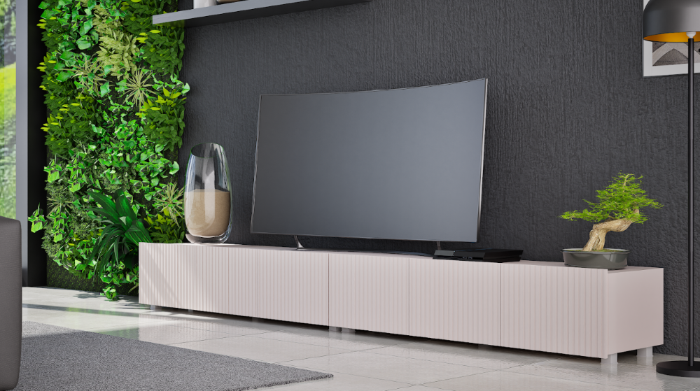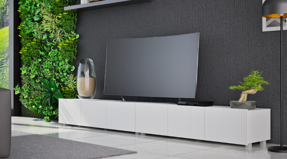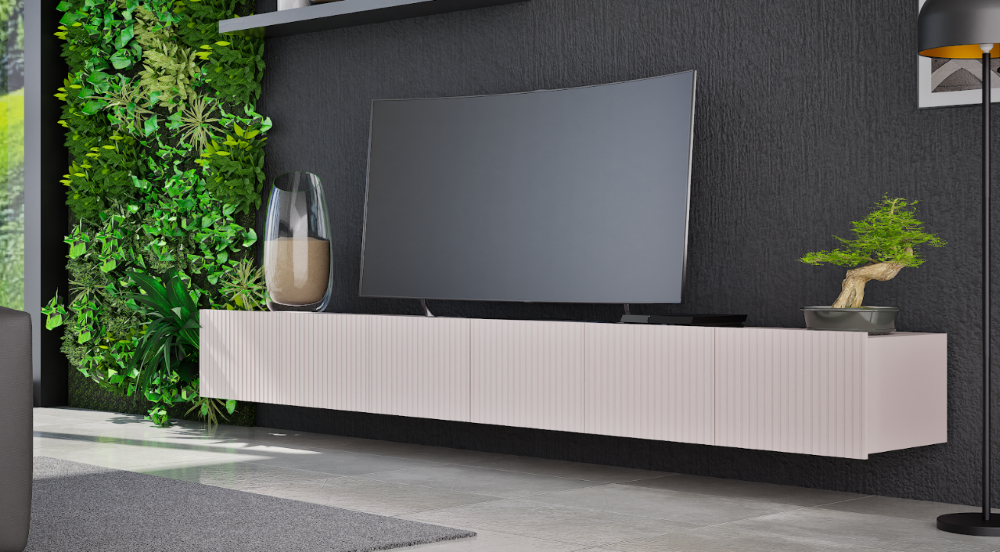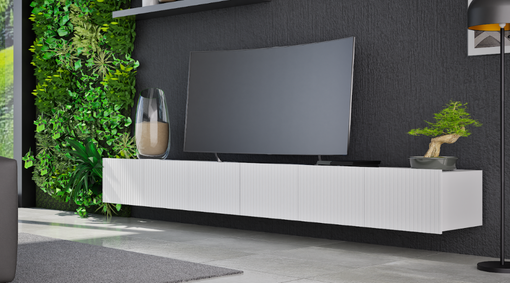Szafka RTV Ryflowana 300 cm Czarna Stojąca Lub Wisząca COLER GB – 4 Kolory