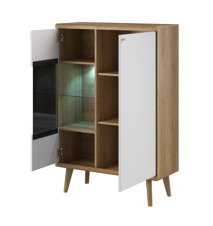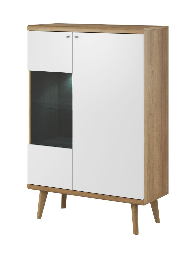 Witryna 90cm Dąb Riviera / Biel Na Nóżkach PREMIO ps