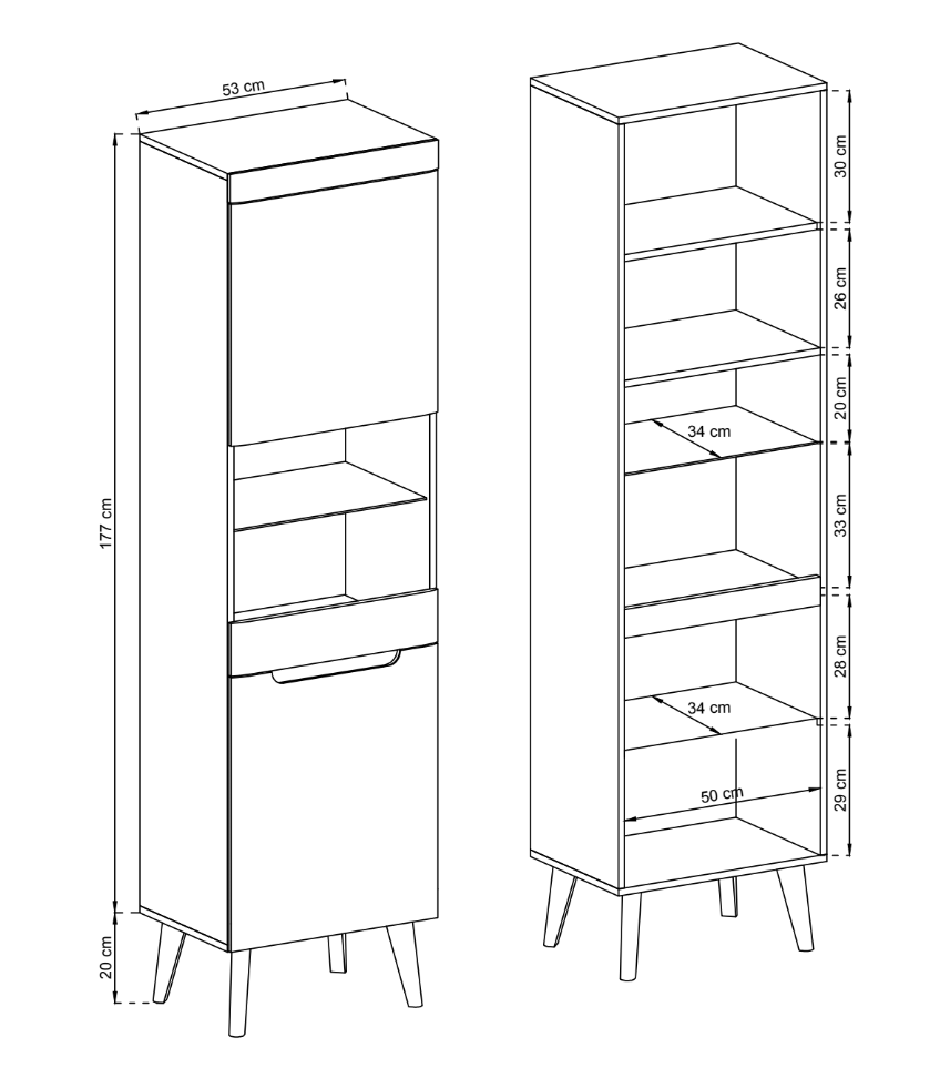 Wymiary 40 × 53 × 197 cm
