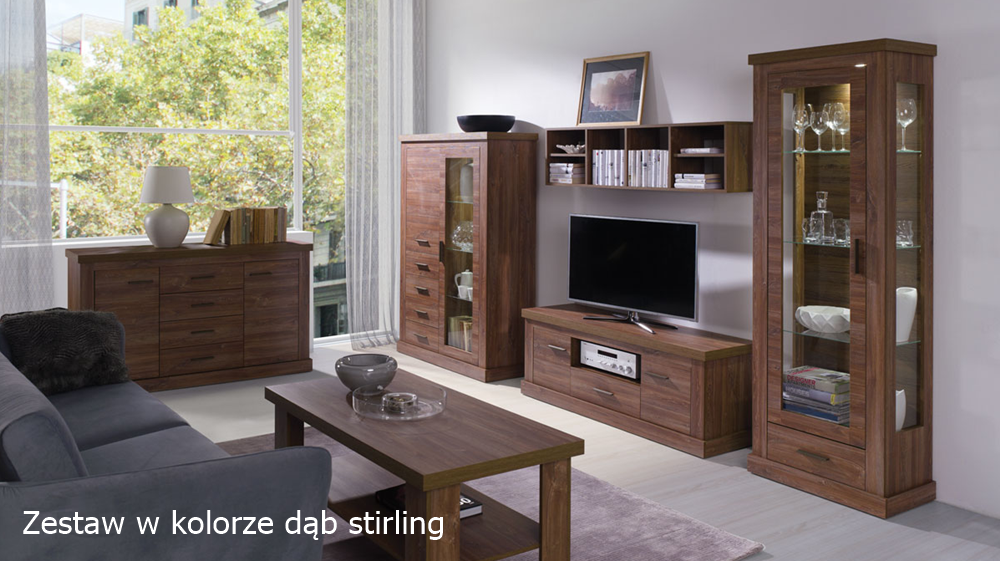 Meble w kolorze dąb stirling oraz sosna śnieżna przedstawione są na zdjęciu w galerii poniżej