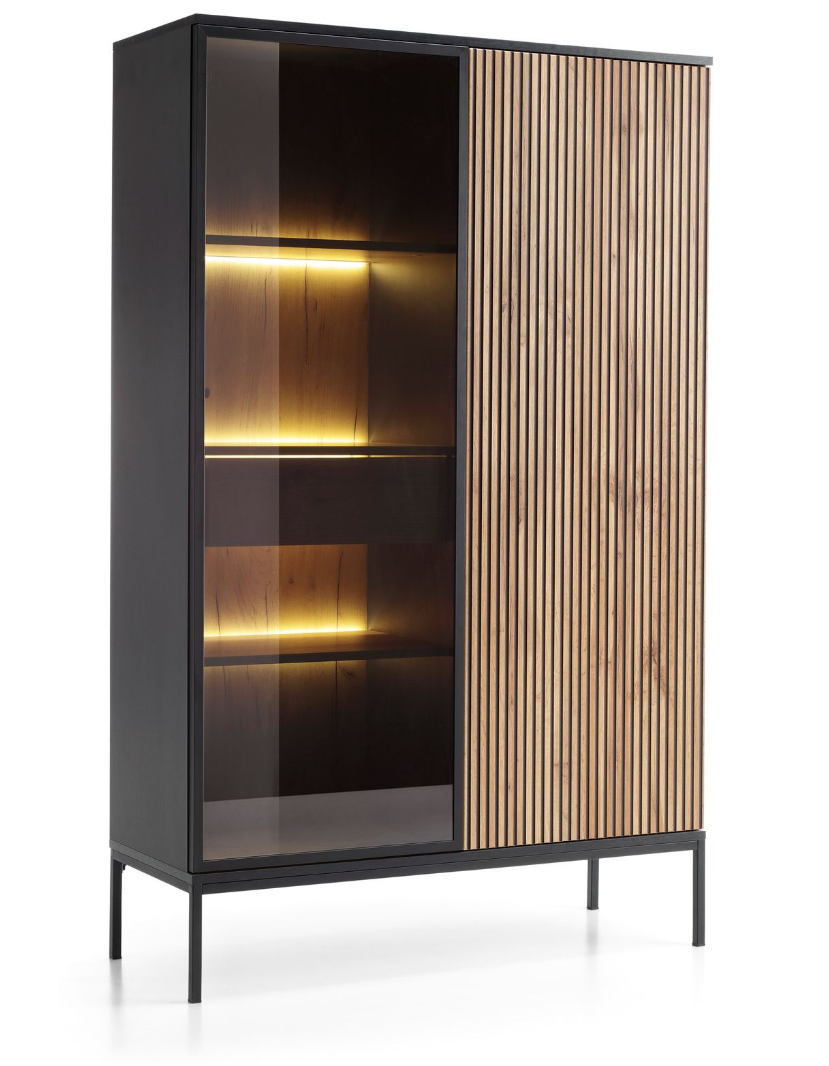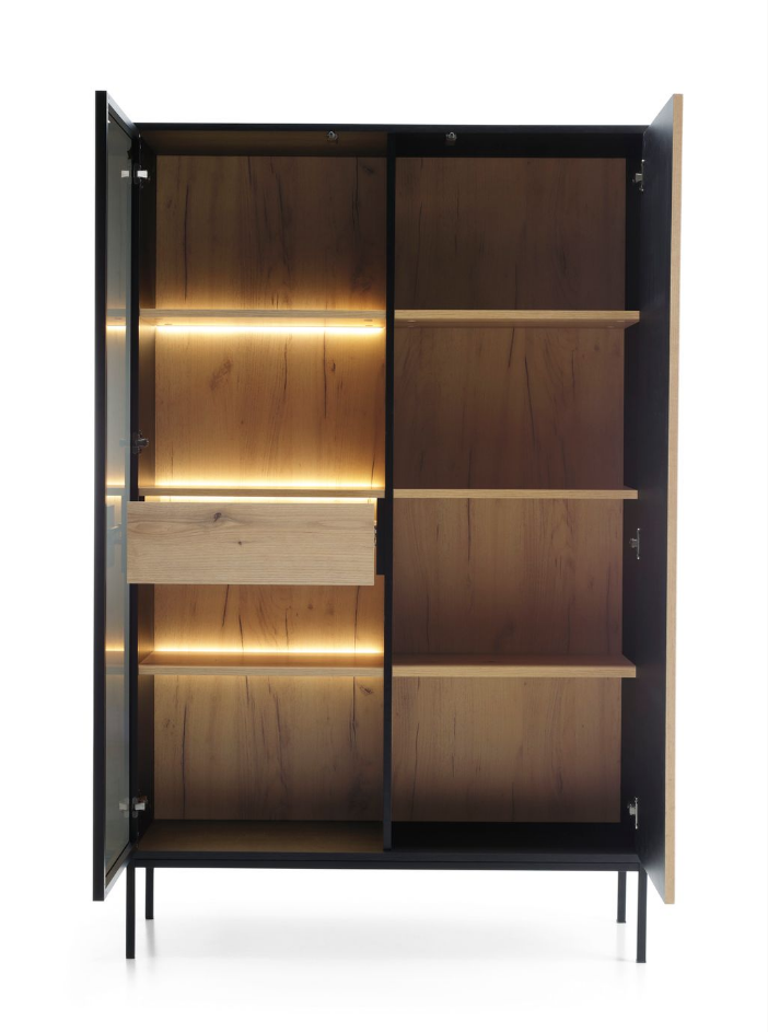Witryna Wysoka Czarny Grafit / Dąb Wotan + Oświetlenie Led WTSZ 104cm SELVIO ps