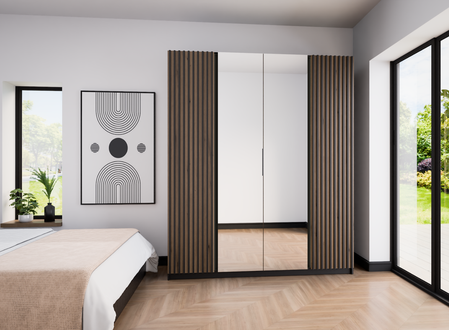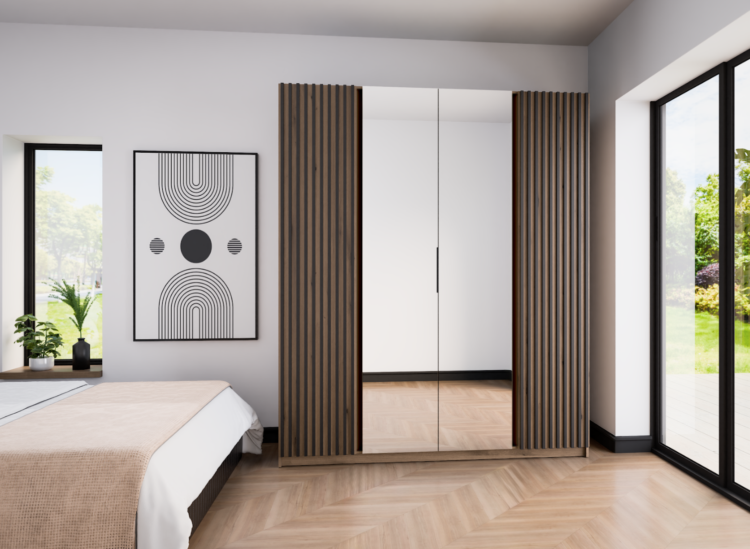 szafa z lustrami i lamelami w 4 opcjach kolorystycznych do wyboru