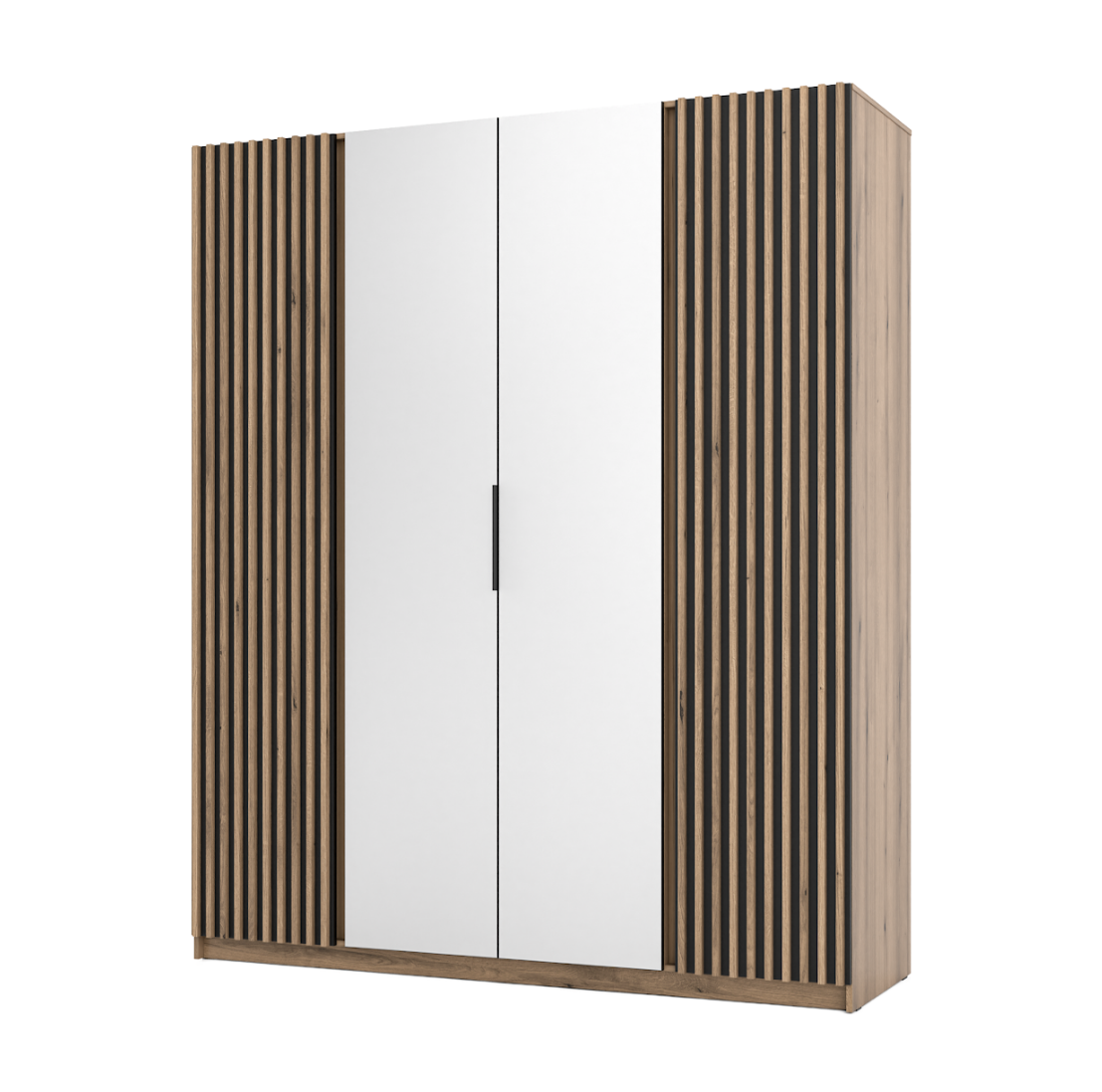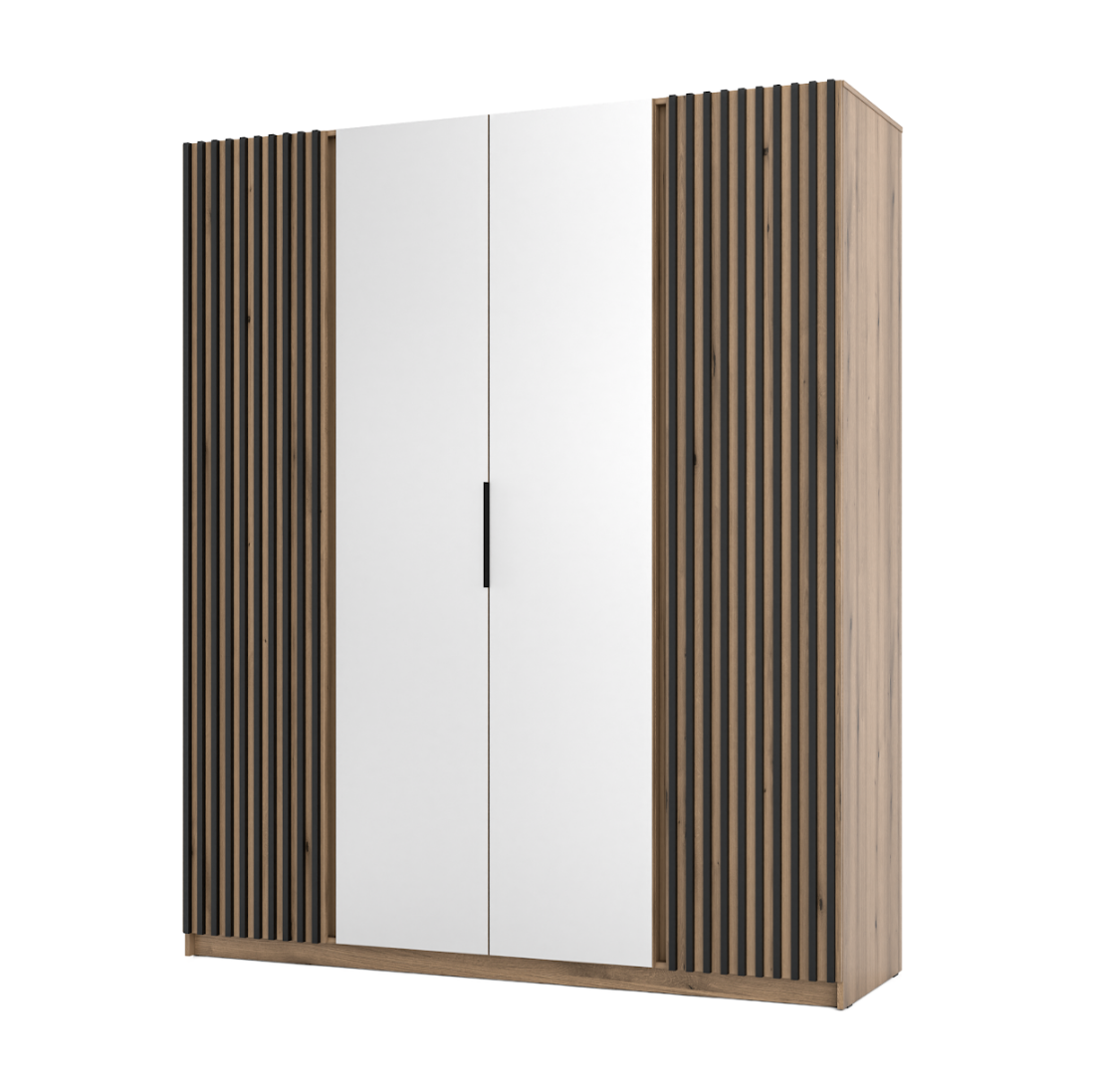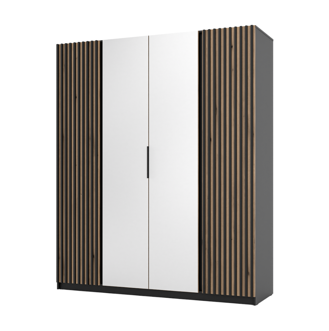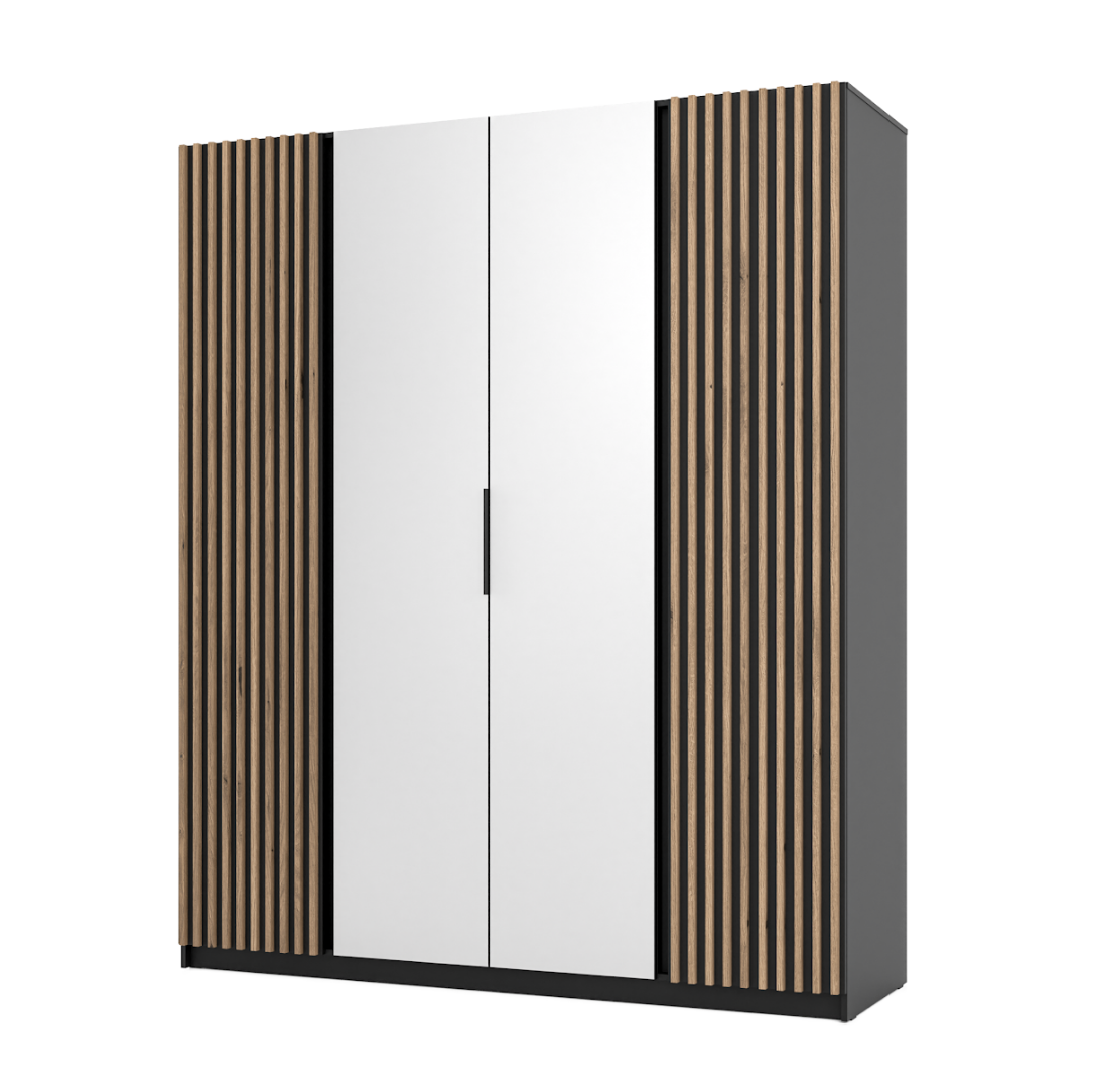Wysoka Szafa z Lamelami 4d Czarna KORA 2 lam 2 lustro lp